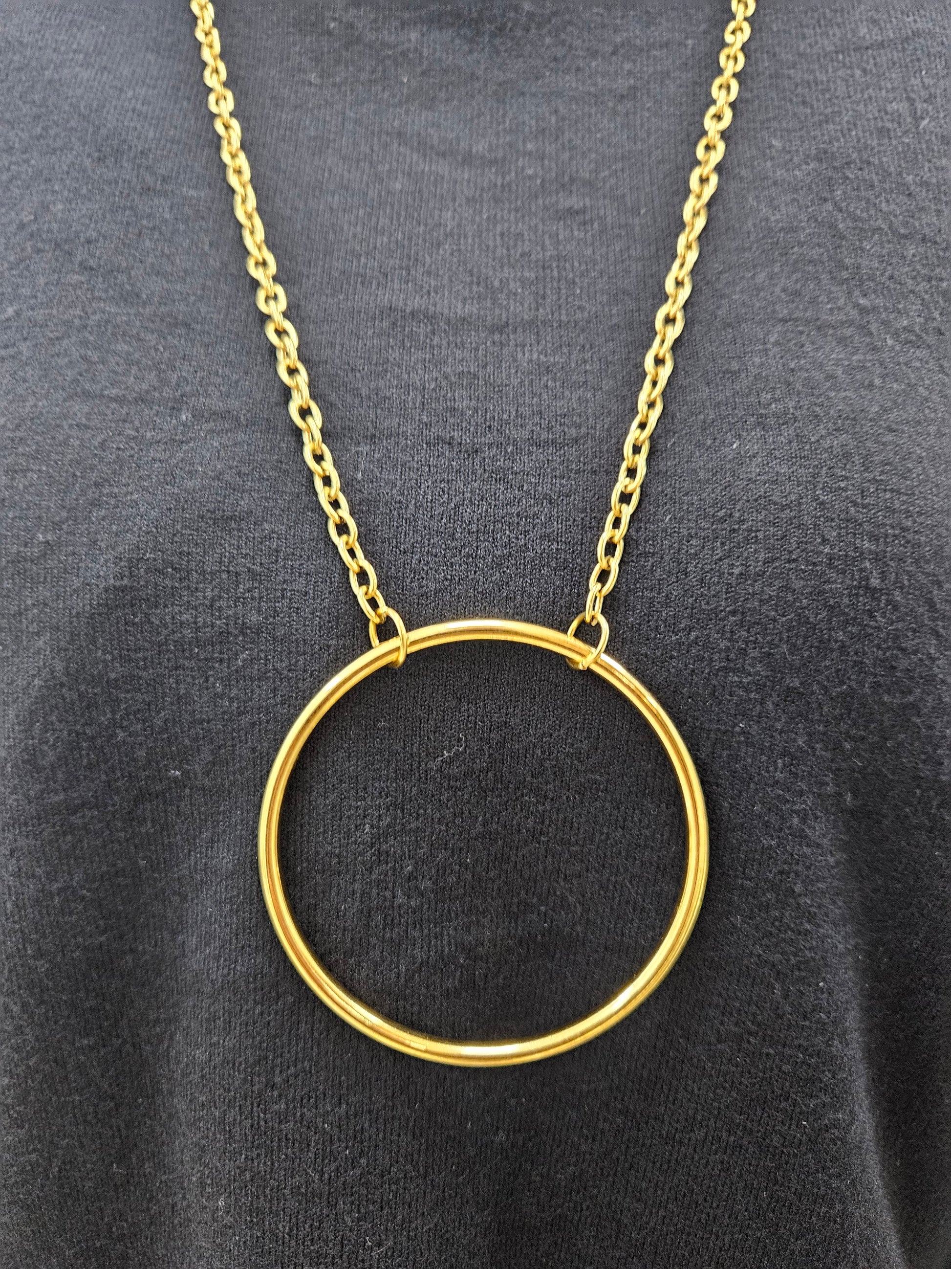 Este elegante collar gargantilla de cero inoxidable presenta un círculo de siete y medio de diámetro, brindando un estilo moderno y versátil. La cadena ajustable de cuarenta y dos centímetros más cinco centímetros adicionales (El modelo corto) y 80cm (modelo largo) es una pieza perfecta para complementar cualquier atuendo.